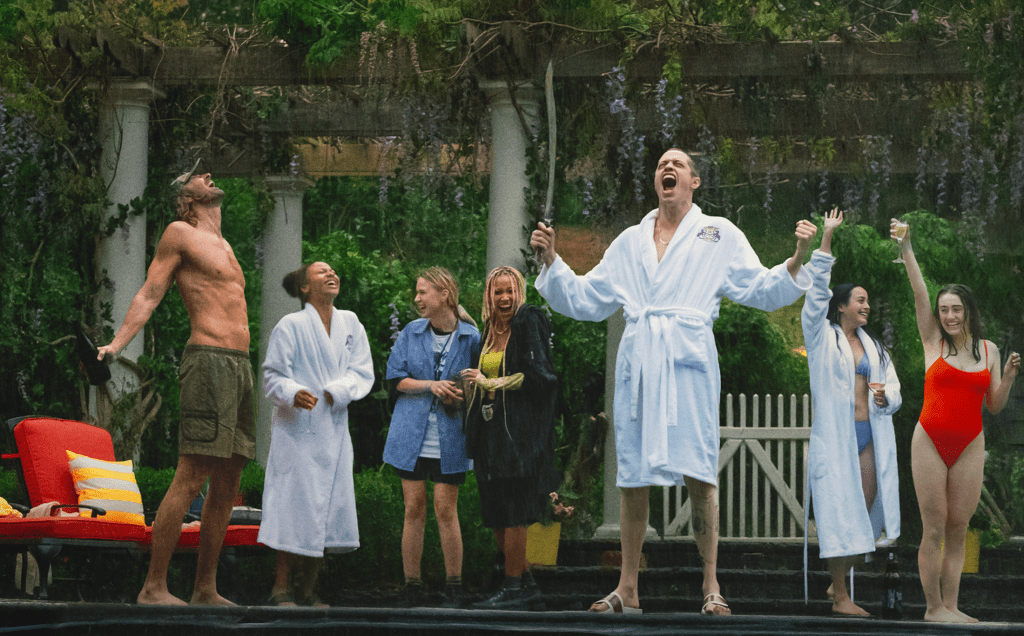 The movie takes place in this giant mansion where these group of friends are having a hurricane party. Sophie, played by Amandla Stenburg, and Bee, played by Maria Bakalova, are girlfriends. Sophie wants Bee to meet her friends so they show up to the party.